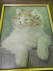 Vintage Retro Sad Lion Mcm Mid Century Modern Oil Sofa Painting Mod Wall Art