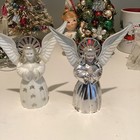 Vintage Mid Century Modern Plastic Christmas Angels - Set / 2 - 4” - White & Sil