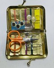 Vintage Mini Travel Sewing Kit Gold Tone With Kiss Lock Wallet Style