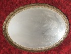 Vintage Small Metal Filigree Trimmed Dresser Vanity Tray Oval Mirror 7" X 5"