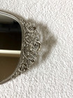 Vintage Silver Tone Oval Floral Vanity Tray Glass Mirror Silver & White Rare