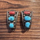 Vintage Native Sterling Sleeping Beauty Turquoise & Red Coral Watch Tips 925