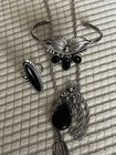 Vintage Native American Navajo Sterling Silver 925 Onyx Jewelry Set