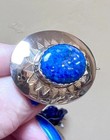 Beautiful Vintage Native American, Navajo Sterling Silver Lapis Stampwork Brooch