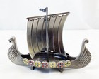 Vintage Norway Pewter Viking Ship With Enamel Inlays Sail