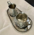Vintage Norwegian Pewter Viking Decorative Set Cups & Candle Holders