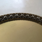 Vintage Brass Look Oval Floral Filigree Mirrored Vanity Tray Glass Mirror