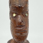Vintage Carved Wooden Tiki Statue New Zealand Maori Paua Shell