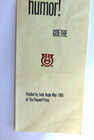 Vintage Paper Bookmark The Pequed Press By John Ruyle Berkeley Goethe 1985