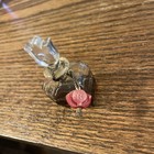 Vintage Mini Glass Perfume Bottle With A Pink Ribbon And Painted Flower Rare