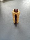 Vtg Filigree Vanity Lipstick Holder 5 Tube 1.75"x3.75"gold Red Beads Granny Core