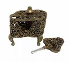 Mid Century Ornate Lipstick Tube Holder Perfume Bottle Combined Footed Gold Tone