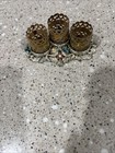 Vintage Gold Tone Brass Filigree 3 Lipstick Holder 1950s W Rhinestones