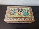 Vtg Persian Lacquered Wooden Inlaid Khatam Marquetry Hunting Scene Trinket Box