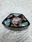 Vintage Cloisonne Pill Trinket Box Miniature Flowers Octagon Shape Hinged