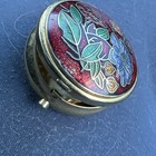 Cloisonnne Floral Enamel And Metal Push Button 2 Compartment Vintage Pill Box
