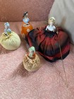 Collection Of (4) Vintage Lady Porcelain Half Doll Pin Cushions W/ 2 Pins