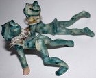 Vintage Ceramic Green Pixie Elf Figurine 1950s Fairy Playful Laying Down Nice!!