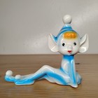 Vintage Ceramic Pixie Elf Figurine 1950s 1960s Mid-century Mcm Blue Japan