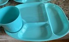 Vintage Midcentury Plastic Divided Plate Lunch Sets Plates & Cups Blue