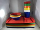 Vintage Plastic Plates Cups Cutlery Primary Colors Usa Never Used Two Sets Of 8