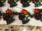 10 Vtg Stained Glass Look Plastic Ornaments Angels Trumpet Horn Suncatcher Mcm