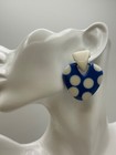 Estate Vintage ? Plastic Retro Polka Dot Heart Post White Blue Earrings