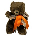 Vintage 80s Brown Teddy Bear Stuffed Plush With Polka Dot Bow Woodland Applause