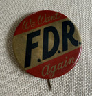 Vintage Fdr Campaign Pin 2.25” We Want Roosevelt Again Red Gold Political Button