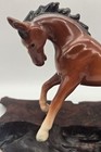 Vintage Porcelain Prancing Chestnut Horse Figurine Glossy 6.5" X 9"