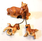 Vintage Porcelain Horses Figurine Foals Brown Stallion Statue Japan