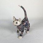Vintage Patchwork Hand Painted Cat Figurine Green Eyes Porcelain/ceramic 9"