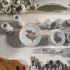 Vintage Child Porcelain Floral Tea Set And Accessories 33 Pieces White Pink Blue