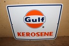 Original Vintage 1960s Gulf Kerosene Gas Station Pump Plate Porcelain Metal Sign