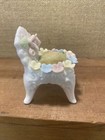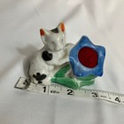 Adorable Ceramic Cat With Blue Flower Pin Cushion Vintage Japan Home Decor