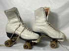 Vintage Chicago White Roller Skates Chicago Wooden Wheels Size 8 With Box