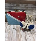Vintage Chicago Roller Skates..wooden Wheels.womans Sz 6. Metal Carry Case & Box