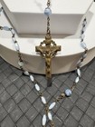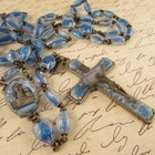 Antique Vintage Light Blue Stone Rosary Italy Rosary 58 Beads Estate Rosary 35”