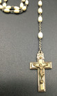 Vintage Catholic Religious White Rosary Beads Italy Crucifix Pewter?