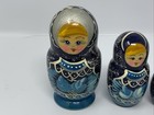 Vintage Blue Silver Gold Russian Matryoshka Nesting Dolls Set 5 Pcs Hand-painted