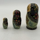 Vintage Russian Nesting Dolls Hand Painted Black Blue, Green & Cream Six Dolls
