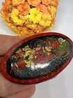 Vtg Hand Painted & Signed Russian Lacquer Wooden Brooch