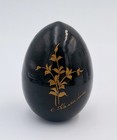 Vintage Traditional Russian Wooden Egg Ornament Signed Hand Painted Black Gold
