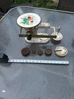 Vintage Cast Iron Kitchen Balance Scale W/ Weights Floral Top Works Great