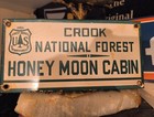 Vintage Honeymoon Cabin Porcelain Sign 1951 Old Crook National Forest Service