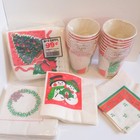 Vintage Lot Christmas Tree Paper Party Plates Tablecloth Napkins Holiday Set