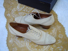 Di Romani Womens White Brown Wing Tip Leather High Heel Shoes Italy Sz 8.5n