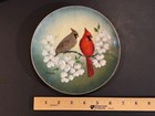 Vintage Enamel On Copper Cardinal Bird Couple Decorative Plate Signed M Ratcliff