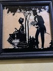 Vintage Silhouette Man Courting Lady Framed Wall Hanging Picture 8.5"x10" *as Is