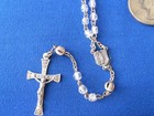 Vintage Bojar Sterling Crucifix Medallion Rosary Clear Glass